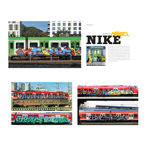 After a three-year break, issue 61 breathes new life into the graffiti scene. On 96 jam-packed pages, you’ll find an exclusive selection of mixed walls and trains, along with exciting specials that are sure to delight everyone. The highlight: an exclusive interview with HORST, one of Stuttgart’s most exciting writers, whose pieces combine classic graffiti elements with modern design.